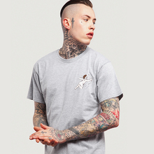 2017春夏新款骷髅头刺绣高工艺洗水针织牛仔面料男式T恤