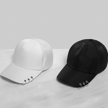 潮牌欧美简约纯色金属铁环男女款情侣款弯沿帽棒球帽休闲