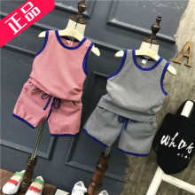 童装2017夏季新款韩版男童时尚百搭无袖背心+超短裤儿童两件套装