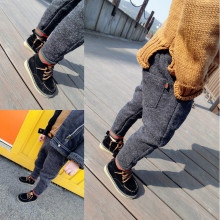 儿童休闲裤男童毛呢长裤中小童休闲裤韩版加绒裤子2016冬装新款潮