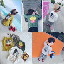 儿童棉麻T恤 透气童装2016新款夏秋装宝宝上衣男童T恤七分袖卫衣