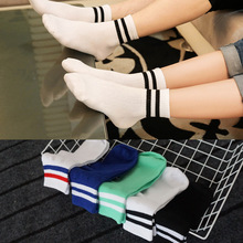 原宿软妹权志龙同款两条杠袜子学院风二杠短袜男女条纹两道杠袜子