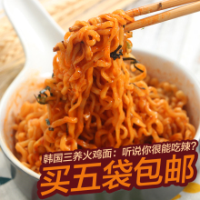 韩国进口方便面三养火鸡面速食泡面超辣鸡肉味干拌面食品140g*5包