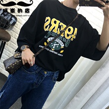 2017春新款韩版印花字母宽松打底圆领落肩七分袖显瘦百搭T恤女