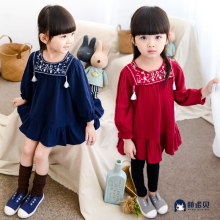 童装女童连衣裙长袖2015秋装儿童刺绣亚麻公主裙民族风淑女裙裙子