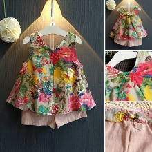 2017夏季新款小女孩衣服民族风女童套装碎花裙衫+女童短裤两件套
