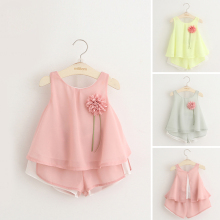 女童套装夏季薄款2017新款童装宝宝衣服小女孩雪纺吊带短裤两件套