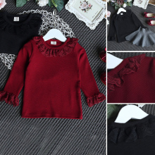 女童打底衫春秋长袖2016童装小孩上衣蕾丝花边荷叶领儿童宝宝T恤