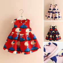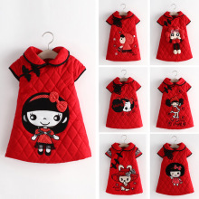 女童旗袍连衣裙秋冬加厚夹棉宝宝唐装新年装卡通女孩儿童马甲裙子