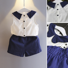 女童棉麻套装夏季2017童装薄无袖宝宝娃娃衫儿童短裤小女孩两