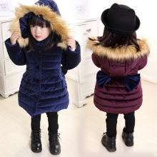 女童棉衣中长款加厚秋冬保暖童装2016儿童毛领蝴蝶结连帽棉袄外套