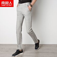南极人2017春季新款男士商务休闲裤青年亚麻男裤直筒修身长裤子