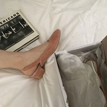 [ELINASEA]新款优雅气质小方头浅口麂皮绒面粗跟凉鞋单鞋女