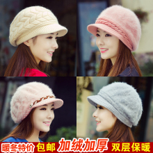 韩版女时尚秋冬天针织鸭舌毛线帽子休闲百搭兔毛帽潮冬季韩国保暖