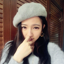 韩国秋冬季可爱百搭羊毛贝雷帽韩版女潮英伦蓓蕾画家帽子冬天黑色