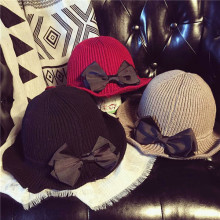 韩国秋冬季蝴蝶结毛线盆帽针织帽子休闲渔夫帽女保暖休闲礼帽潮