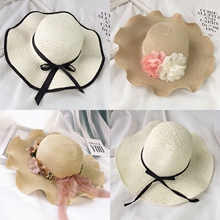 韩国草帽女夏季沙滩帽波浪边亲子帽防晒太阳帽海边度假大檐沙滩帽