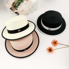 夏天韩版小礼帽子潮女英伦草帽 包边平顶帽加密草编遮阳沙滩帽子