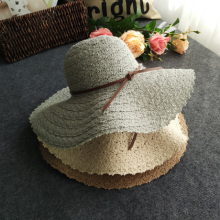春夏热销手工勾针草帽大沿帽折叠沙滩帽蝴蝶结简约遮阳帽太阳帽