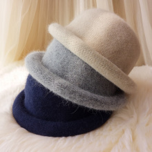 秋冬复古卷边小圆帽韩版潮秋纯色兔毛针织毛线帽子丸子帽小礼帽女