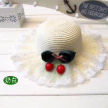 夏天遮阳帽蕾丝花边樱桃草帽女蝴蝶结防晒帽亲子沙滩太阳帽公主帽