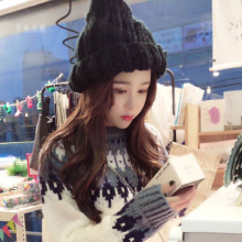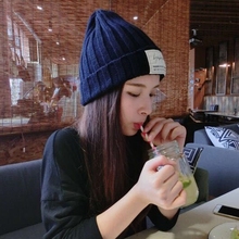 韩国秋冬天加厚保暖贴布标针织毛线帽子潮男女士套头冷帽韩版冬季