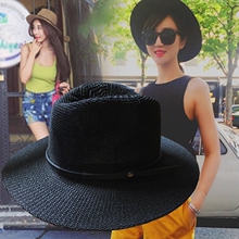 夏季新款礼帽韩版遮阳帽英伦女帽子男士草帽黑色爵士帽度假沙滩帽