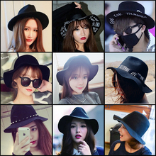 呛口小辣椒羊毛呢m字母礼帽子女韩国秋冬天英伦爵士黑色标同款