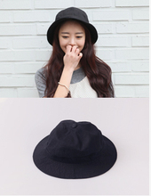 韩版纯黑色百搭盆帽女可折叠渔夫帽春夏防晒遮阳帽子情侣帽休闲帽