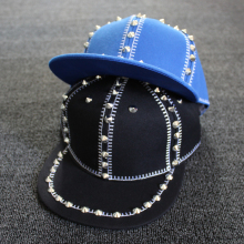 韩版纯色缝线铆钉平檐棒球帽子女夏天嘻哈街舞平沿帽鸭舌帽子男士