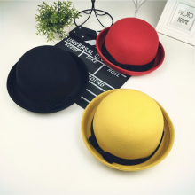 蝴蝶结圆顶礼帽女韩版潮秋冬天仿羊毛呢渔夫帽盆帽英伦复古毡帽子