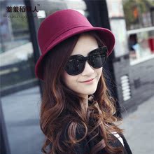 韩国时尚甜美可爱圆顶光板毛呢帽波浪边大檐帽礼帽子女韩版潮秋冬