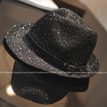 2017新款出游礼帽女春夏帽子女韩版时尚亮片皮带爵士帽英伦小礼帽