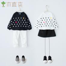 植木童装 原创春装儿童韩版宽松波点印花吃豆豆套头男女童卫衣
