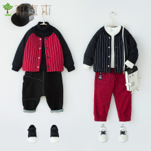 植木童装 原创冬季棉服内胆韩版男女童保暖棉袄儿童条纹拼接棉衣