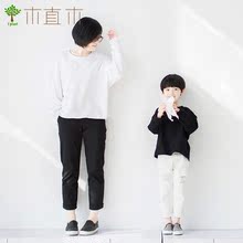 植木童装 原创设计春季韩版宽松全棉亲子装儿童卫衣长袖黑白2色