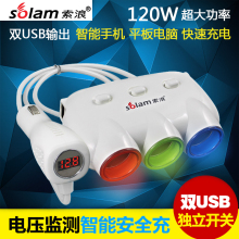 索浪带开关一拖三点烟器车载充电器双USB汽车用一分三多功能车充
