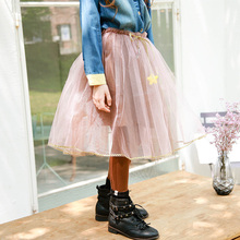 2016秋季新品女童半身裙网纱公主半裙中腰韩版假两件中大童星星裙