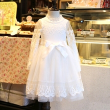 hibaby秋冬新品童装女童连衣裙白色网纱裙儿童公主裙蕾丝蓬蓬裙