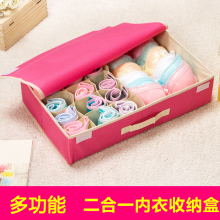 二合一放内衣收纳盒有盖加高内裤袜子整理箱多格抽屉文胸储物盒子