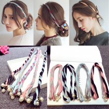 韩国新款珍珠蕾丝飘带细发箍头箍发卡韩版蝴蝶结发带头饰发饰品女