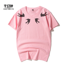 燕子t恤女短袖夏季时尚印花圆领套头宽松体恤百搭英国潮牌打底衫