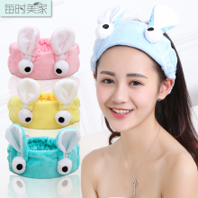 每时美家洗脸化妆头带面膜卡通兔耳朵束发带 运动瑜伽发箍美容巾