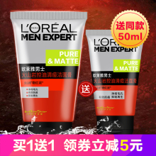 欧莱雅男士洗面奶 火山岩泥控油清痘洁面膏100ml乳皙白祛痘去黑美