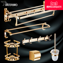 沐鸟卫浴 欧式金色太空铝毛巾架卫生间置物架浴室挂件套装浴巾架