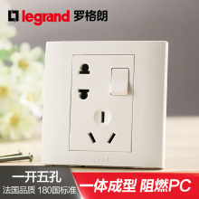 罗格朗tcl开关插座仕典白一开单控带荧光一位单极墙壁电源86型