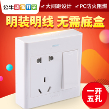 公牛明装开关插座1开单开一开双控五孔带开关明线10A一开五孔面板