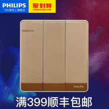 飞利浦开关插座墙壁开关面板飞逸香槟金三联单控带荧光三开单控
