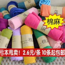 围巾女秋冬纯色百搭棉麻围巾长款丝巾披肩两用女士超大糖果色纱巾
