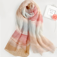 真丝丝巾女桑蚕丝2017春季新款薄款披肩围巾两用百搭长款渐变纱巾